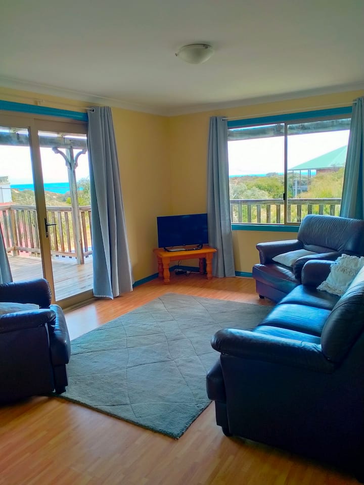 Escape to Preston Beach - Ocean Views Big Sky, a stylish 3-bed, 2-bath coastal retreat with panoramic Indian Ocean and golf course views. Relax on the sundeck, enjoy an open-plan living area, and cook in the fully equipped kitchen. Perfect for families, couples, or small groups, with Wi-Fi, air-conditioning, and parking, plus nearby beaches, walking trails, and fishing spots.