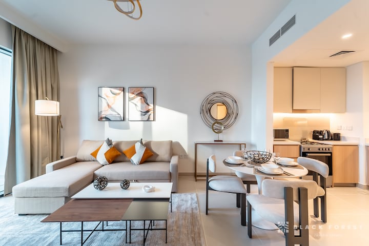Კეთილი იყოს თქვენი მობრძანება ამ დახვეწილ 1-BR ბინაში Island Park 2 Tower-ში, პირდაპირ დუბაის კრიკ-ჰარბორში მდებარე პარკთან. Ის მდებარეობს დუბაის ერთ-ერთ ულამაზეს მოედანზე – კრიკის პრომენადიდან რამდენიმე ნაბიჯში, მომხიბლავი კაფეებით, შესანიშნავი რესტორნებითა და წყლისპირა საფეხმავლო ბილიკებით. Დუბაის ცენტრში, ბურჯ-ხალიფასთან და დუბაის მოლთან ერთად, რამდენიმე წუთის სავალზეა. Განსაკუთრებული განმარტოება სტუმრებისთვის, რომლებსაც სურთ წყალზე სიმშვიდითა და ქალაქის ცხოვრებასთან სიახლოვით ტკბობა.