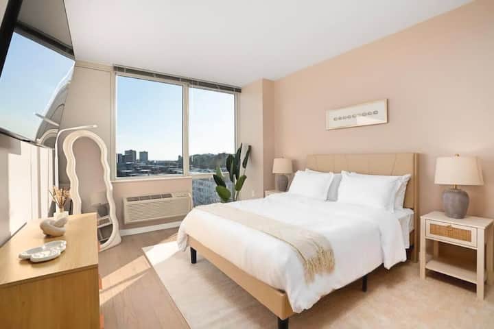 ლუქს-კლასის საცხოვრებელი ჰობოკენში | ხედები, აუზი და ნიუ-იორკის ცენტრი