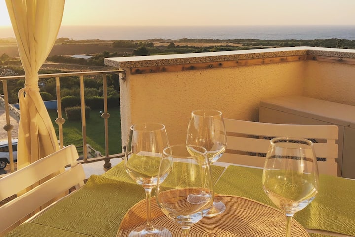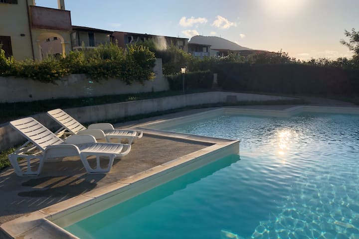 Მყუდრო სახლი ტერასით, რომელიც ზღვასა და აუზს გადაჰყურებს