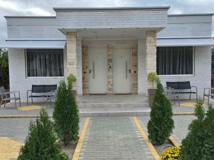 - დასასვენებლად დასაქირავებელი საცხოვრებლები გარე დასაჯდომი ადგილებით: ტრიკალა