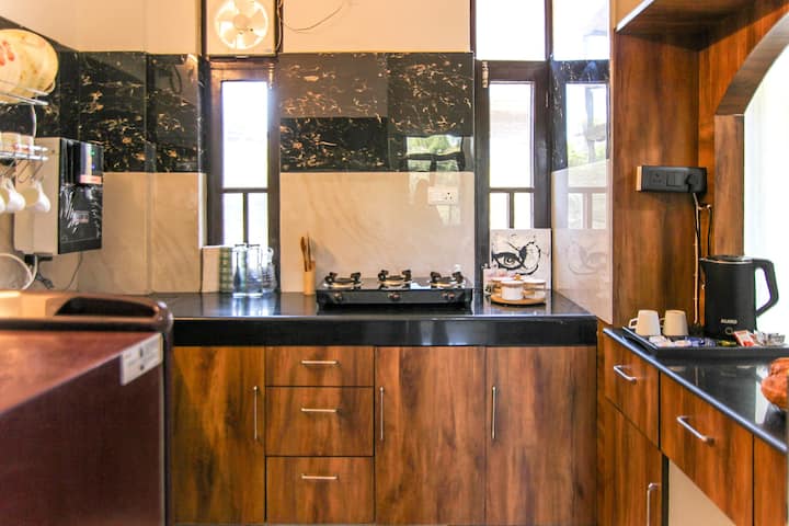 ეს არის 2BHK ბინა, მაგრამ ჩვენ ვხურავთ ერთ ოთახს, როდესაც ჯავშანი 2 ადამიანზეა. კონფიდენციალობაზე ნუ ღელავთ — სახლში ან სართულზე სხვები არ იქნებიან. Ბინა 2-სართულიანი შენობის პირველ სართულზეა. Მთლიანი სართული ცალკეა სტუმრებისთვის, თუმცა კიბით ისარგებლებენ სხვა სტუმრები, რომლებიც სხვა სართულებზე რჩებიან. Მფლობელები რჩებიან საკუთრებაში, ხოლო სტუმრებს ექნებათ მთელი პირველი სართული სრული კონფიდენციალურობით სტუმრობის განმავლობაში. Სახლი შესაფერისია შინაური ცხოველებისთვის. Შენობაში არ არის ლიფტი/ლიფტი და არ არის შშმ პირთა ეტლებისთვის შესაფერისი. საცხოვრებლის ტერიტორიაზე არის საპარკინგე ადგილი. Მძღოლის განთავსება არ არის გათვალისწინებული. Საუზმე არ შედის. Სტუმრებს შეუძლიათ ტერიტორიაზე არსებული გაზონებით სარგებლობა და პირდაპირი საფეხმავლო ბილიკი, რომ დატკბნენ ნაკადულში ჩაღრმავებით.