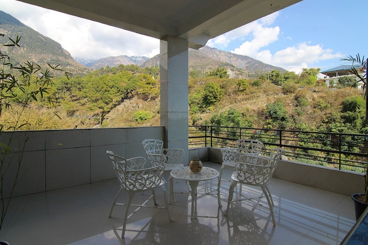ქვემო დჰარამსალაში მდინარის პირას მდებარე, კონდიციონირებული, ერთსაწოლიანი საცხოვრებელი შესანიშნავი ვარიანტია მშვიდი დასვენებისთვის. აქედან დაჰულადარის მთების ულამაზესი ხედი იშლება. ეს არის ოროთახიანი ბინა (თავდაპირველად სამოთახიანი იყო, მაგრამ ერთი ოთახი ჩაკეტილი იქნება), რომელშიც არის სამზარეულო, ორი სააბაზანო, სასადილო ოთახი და თვალწარმტაცი აივანი (რომელიც მთისა და მდინარის ხედებს იშლება). სტუმრებს შეუძლიათ ისარგებლონ საერთო ბაღით, რომლიდანაც პირდაპირი გასასვლელია მდინარემდე. Სტუმრებს ექნებათ მთლიანი იატაკი სრული კონფიდენციალურობით.