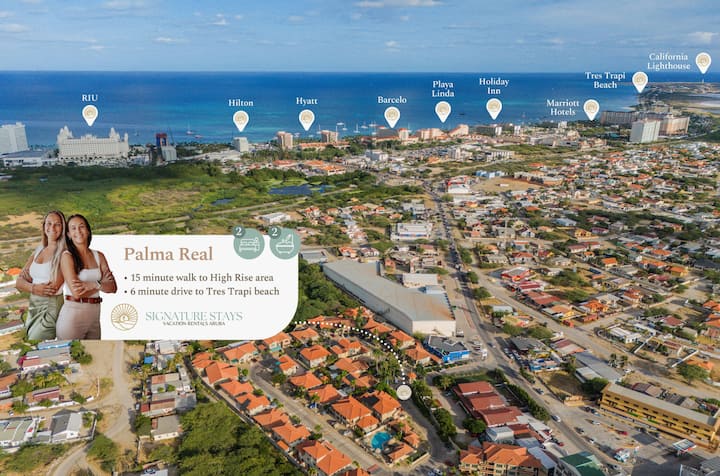მოგესალმებათ Caribbean Hideaway at Palma Real Aruba — თანამედროვე 2‑საძინებლიანი, 2‑სააბაზანო კონდომინიუმი, რომელიც მდებარეობს ნოორდში, პალმა‑რეალის ექსკლუზიურ, შემოღობილ დასახლებაში. კერძო ბაღი, კარიბული სტილით გაფორმებული ინტერიერი და საერთო წვნიანი აუზები ამ საცხოვრებელს კომფორტს, პირად სივრცესა და სიამოვნებას სძენს. ეს საცხოვრებელი იდეალურია ოჯახებისთვის ან მაქსიმუმ ექვსი ადამიანისგან შემდგარი ჯგუფებისთვის. ის პალმ‑ბიჩიდან რამდენიმე წუთის სავალზე მდებარეობს.
