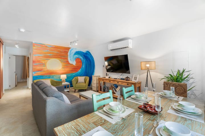 ღია გეგმარების ნათელი მისაღები ოთახი გადადის სასადილო სივრცესა და სამზარეულოში. კარიბული სტილით გაფორმებული და თანამედროვე დეტალებით გამორჩეული ეს საცხოვრებელი იდეალურია დასასვენებლად მთელი დღის განმავლობაში კუნძულის აღმოჩენის შემდეგ.
