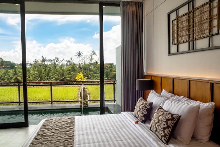 HY ვილა 2 საძინებლით, კერძო აუზითა და ხედით რისის ველებზე, უბუდი