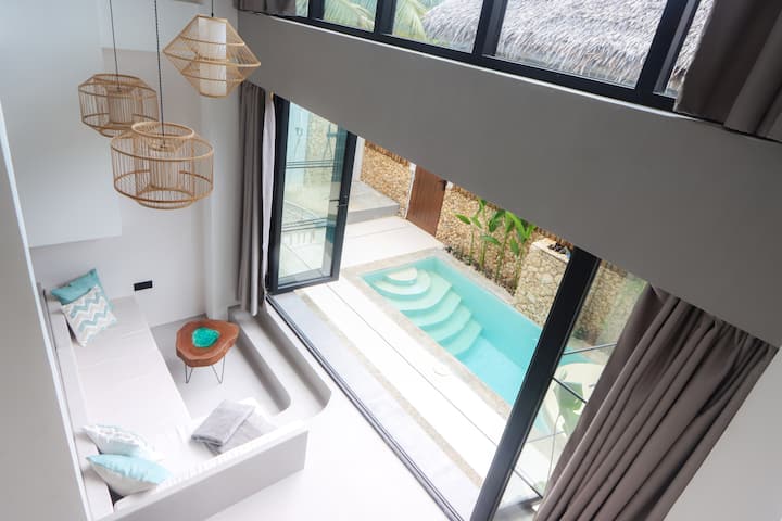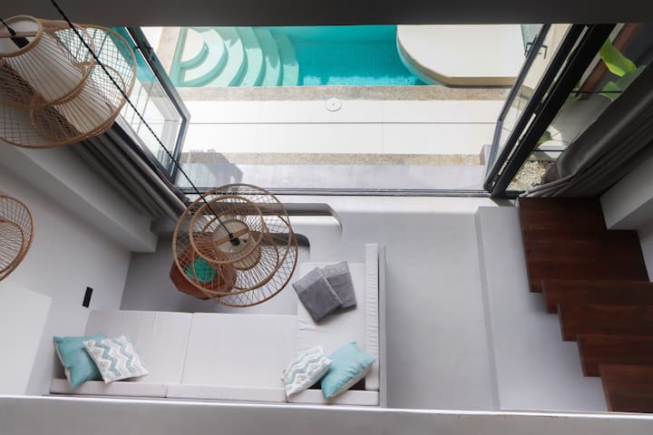 ლუქს-კლასის ეკო-ვილა მინის კედლებით და აუზით პალიტონ-ბიჩთან