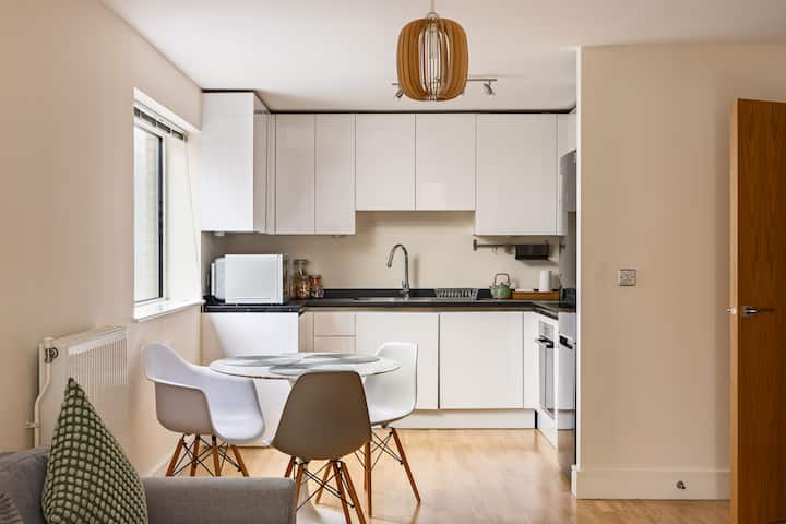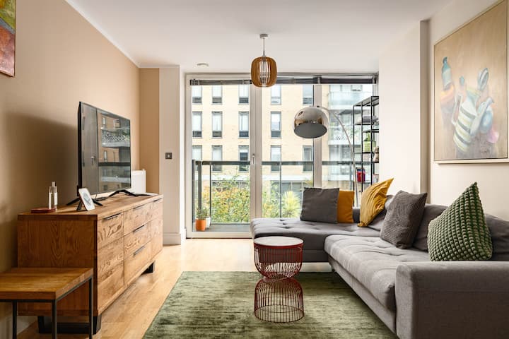 თანამედროვე 1-საწოლიანი ბინა აივნით გრინვიჩში