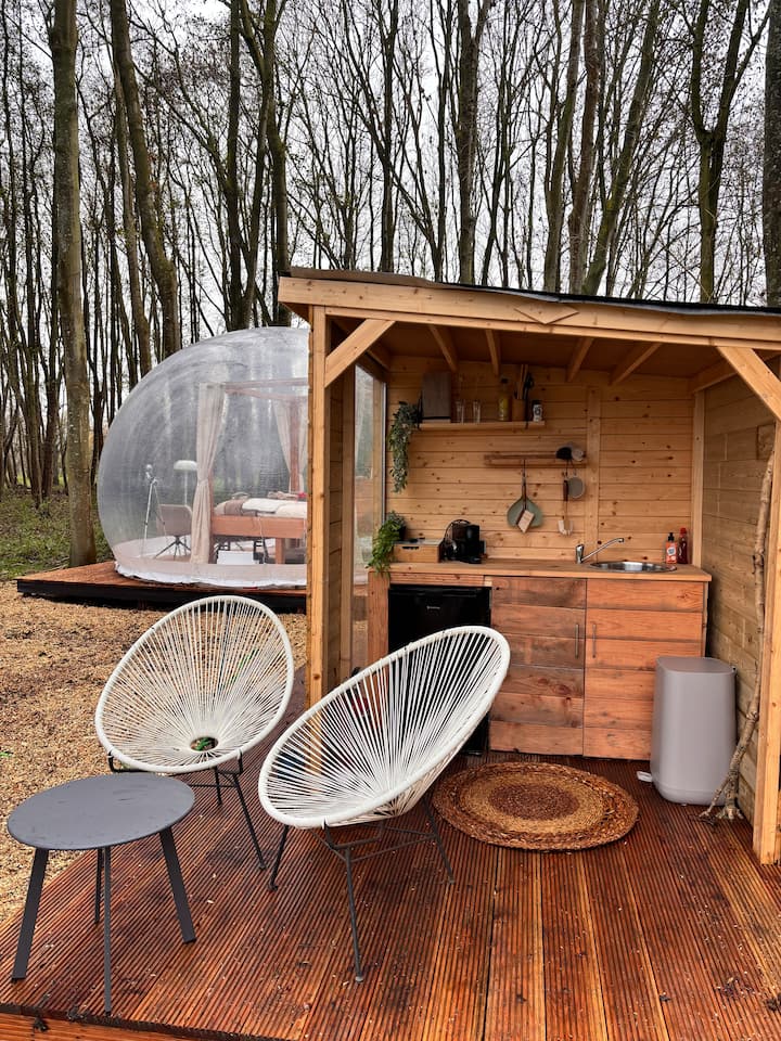 ბუშტის კარვა ბუნებაში ჰიდრომასაჟიანი აუზით ამსტერდამთან