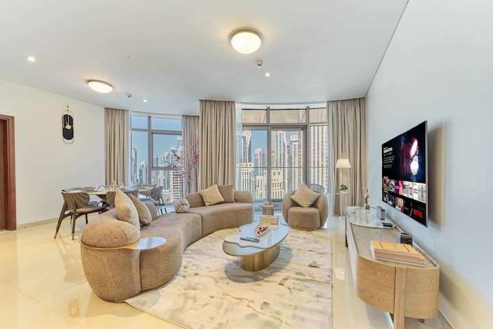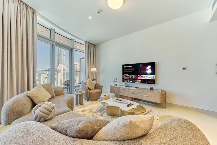 ლუქს-კლასის 3-საძინებლიანი ბინა ბურჯ‑ხალიფას ხედით