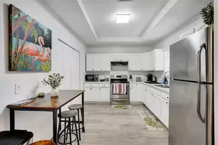 Იდეალურია ოჯახებისა და მეგობრებისთვის. ამ თანამედროვე ოაზისში არის სრულად შემოღობილი უკანა ეზო პირადი აუზით, გრილი ბარბექიუსთვის და აუზის მაგიდა უსაზღვრო დასვენებისა და გართობისთვის. Ჩაუღრმავდით მაიამის მხიარულ ხელოვნებას და მოიწყვეთ დაუვიწყარი მოგონებები სტილში.