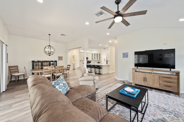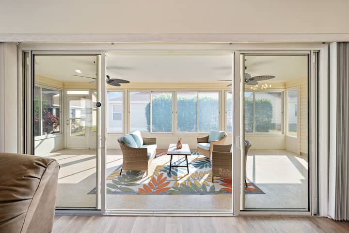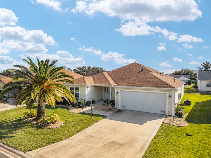 ლამაზი, ჰაეროვანი 3 საძინებლიანი/2 სააბაზანო საცხოვრებელი სანსეტ-პოინტის სოფელში, იდეალურად მდებარეობს 466 და 466A გზატკეცილებს შორის, ყველა სახის გასართობი და პირველადი საჭიროების საშუალებებთან ახლოს. ახლოსაა პოპულარული მოედნები, LAKE SUMTER, SPANISH SPRINGS და BROWNWOOD, სადაც შეძლებთ საყიდლებზე წასვლას, კვებასა და უფასო საღამო გართობაზე დასწრებას. გარშემო გოლფის EXECUTIVE და CHAMPIONSHIP კლასის მოედნებია, ასევე, რამდენიმე აუზი, გასართობი ადგილები და უამრავი აქტივობა! მოითხოვეთ გოლფმობილის ხელმისაწვდომობა თქვენი ჩამოსვლისას. გამოცადეთ სოფლის ცხოვრება!