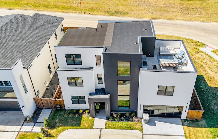 ულტრათანამედროვე ახალი საცხოვრებელი 5 საძინებლით, სახურავითა და მთლიანი ეზოთი