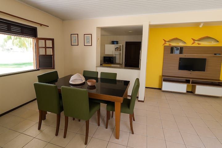 სახლი აუზით Jacuípe-ში, ზღვისპირას მდებარე დახურულ კონდომინიუმში, კონსიერჟითა და პირდაპირი გასასვლელით პლაჟზე. Um refúgio para descanso e lazer em família, com área externa agradável, piscina privativa, segurança e contato direto com a natureza.