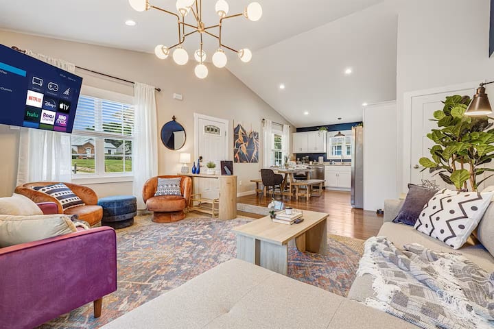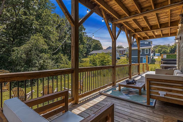 **სტუმართა რჩეულის მდებარეობა, ახალი მფლობელები** მოგესალმებათ Asheville Getaway! Შინაური ცხოველებისთვის შესაფერისი ეს ფართო, 4BR/3BA საცხოვრებელი მაქსიმუმ 14 სტუმარს იტევს, რაც იდეალურია ოჯახებისა და დიდი ჯგუფებისთვის. Ყველა დეტალი გათვალისწინებულია თქვენი გართობისთვის: ჰიდრომასაჟიანი აუზი, არკადული/სამაგიდო თამაშები, აუზის მაგიდა და 85-დუიმიანი სმარტ-ტელევიზორი. Გარე სივრცე იდეალურია საღამოს შეკრებებისთვის, სიმებიანი სანათები ემატება გარემოს, სახანძრო ორმოსა და საქანელებს. გარდა ამისა, ის ქალაქის ცენტრიდან 12 წუთის, ბილტმორიდან კი 10 წუთის სავალზეა!