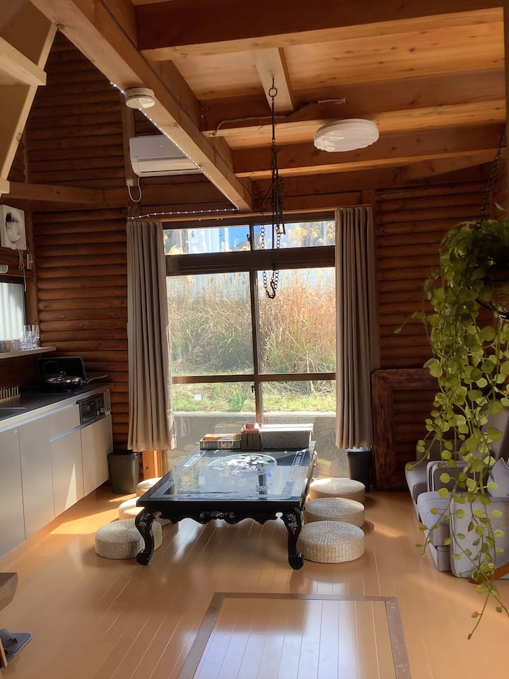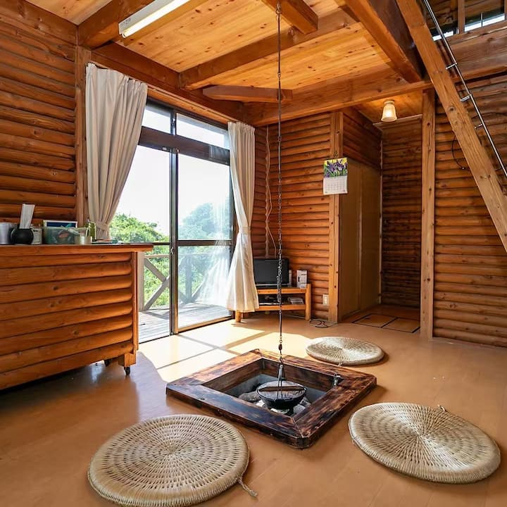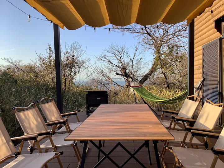 [ავაჯიშიმას დასავლეთ სანაპირო] სახლი ხისგან, რომლიდანაც ზღვა ჩანს | კამინა, ბარბექიუ, ბუხარი და ა.შ. | მაქსიმუმ 6 ადამიანისთვის