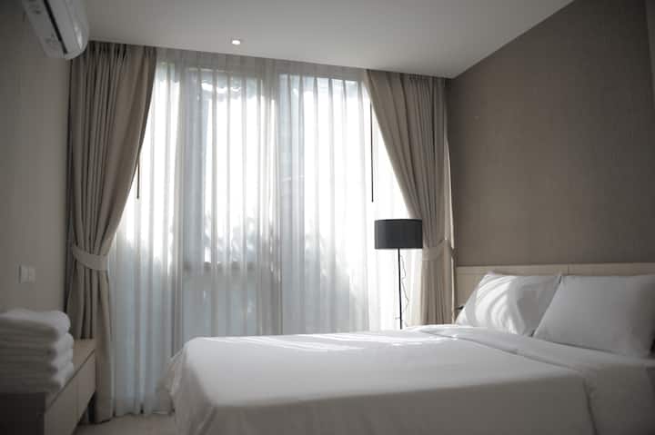 ლუქს-კლასის 2-საძინებლიანი ქალაქის ცენტრში | მშვიდი ოაზისი სილომის მაღალ სართულზე