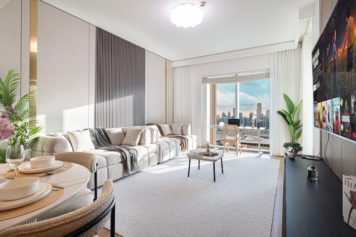 2 საძინებლიანი თანამედროვე საცხოვრებელი | ბურჯ‑ხალიფასა და შადრევნების ხედი | დუბაის მოლი