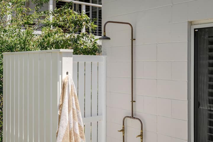 გარეთ, შემოღობილ უკანა ეზოში, ბავშვებს უსაფრთხოდ შეუძლიათ თამაში. ცხელი და ცივი წყლის საშხაპე იდეალურია პლაჟზე ან ყურეში გატარებული დღის შემდეგ დასაბანი.