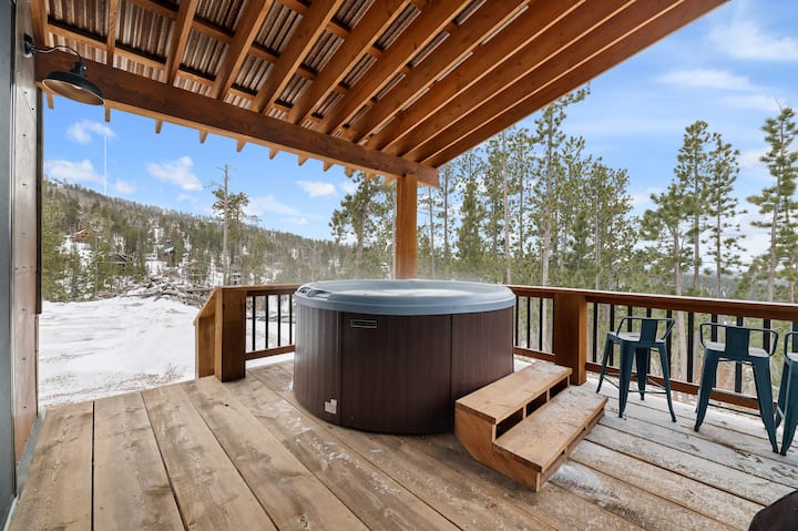 გამოიარეთ დიდ ტერასაზე მთების ფართო ხედებით. მოდუნდით პირად ჰიდრომასაჟის აუზში ♨️ ან გარეთ, კოცონთან 🔥, და დატკბით მზის ჩასვლით ბლექ‑ჰილსის ზეცაზე.