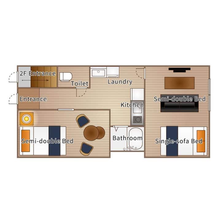 4 წუთი მატარებლით ნამბამდე | პირდაპირი მარშრუტი აეროპორტიდან | 1-ლი სართული მთლიანად | მაქს. 5 ადამიანი | 1688OSAKA-B1