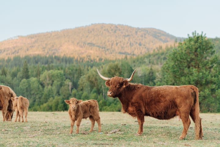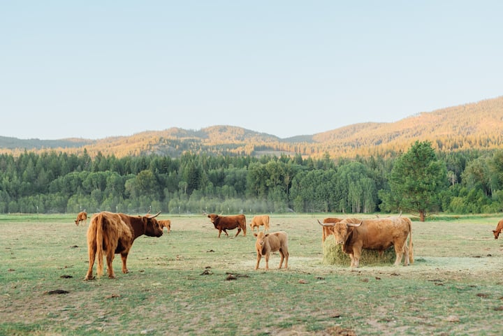 Ჩვენი სტუმრებისა და ჩვენი საყვარელი ფუმფულა ძროხების უსაფრთხოების მიზნით, საძოვრებზე ერთდროულად მხოლოდ ერთ თავისუფალ, ძალიან მეგობრულ, იდეალურ მაღალმთიან ძროხას, ასევე, მრავალ ცხვარსა და ალპაკას! Ეს ძროხები ბუნებრივად ქმნიან იერარქიას და როცა ადამიანები ყურადღებას ან ტკბილეულს სთავაზობენ, მათ შეუძლიათ კონკურენტუნარიანობა და ერთმანეთის მიყოლა. Ეს ნიშნავს, რომ თქვენს იურტის ირგვლივ მაღალმთიანი ძროხების ნახირს ვერ იპოვით. Თქვენ მაინც შეხვდებით სხვა ფუმფულა ძროხებს, რომლებიც უფასოდ შედის ჩვენს „Mobile Moo Crew Hour“ -ში, სადაც ჩვენი თანამშრომლები კიდევ ერთ ფუმფულა ძროხას მოიყვანენ, ასევე, დამატებით ჯაგრისებსა და თმის ღერებსაც კი, რომ თმები დახვეწონ! Საცხოვრებლის დაჯავშნით თანხმდებით და აცნობიერებთ, რომ თქვენს იურტთან ახლოს, უფასო როუმინგულ საძოვრებზე, მხოლოდ 1 ფუმფულა ძროხა, რამდენიმე ცხვარი და ალპაკა იქნება.