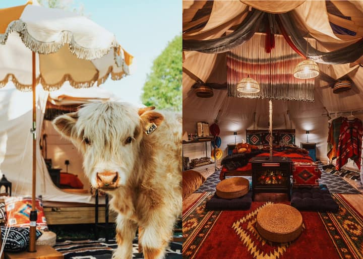 Მოემზადეთ ზედმეტად დატვირთვისთვის The Cowabunga Yurt-ში! თქვენს უნიკალური დიზაინის მქონე იურტასთან თავისუფლად დადიან საყვარელი ფუმფულა მაღალმთიანი ძროხა და ღორი. გარდა ამისა, იურტას ხშირად ესტუმრებიან საყვარელი მინი‑პონიები, თხები და ლეკვები!