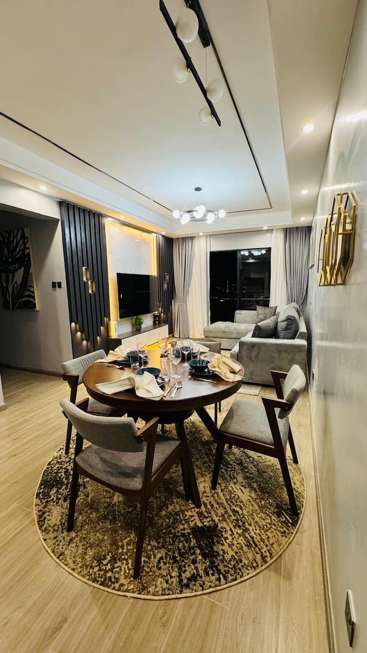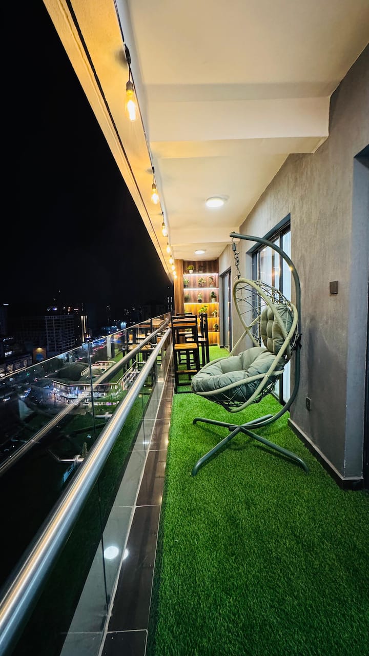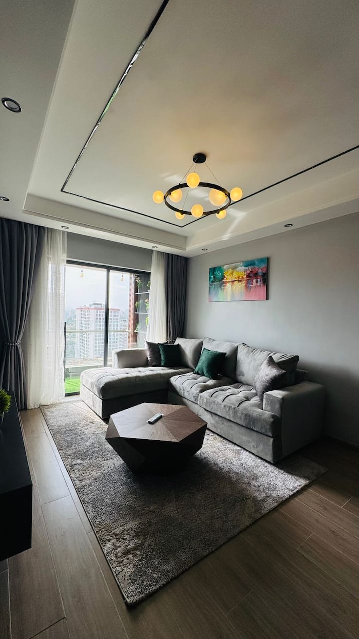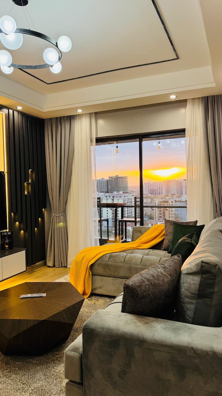 ლუქს-კლასის 2-საძინებლიანი ბინა მაღალ სართულზე ხედით