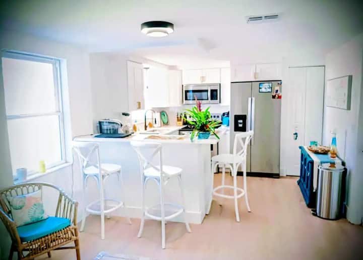 გამარჯობა, მე ვარ კიმი, ოქტომბერში გადავედი ფლორიდაში სამხრეთ კალიფორნიიდან. მე, უბრალოდ, ჯერსისელი გოგო ვარ. მრავალი წლის განმავლობაში ვოცნებობდი, რომ ფლორიდაში ვიცხოვრო და დავტკბე ყველაფრით, რასაც ის გთავაზობთ! მიყვარს პლაჟი, ნიჩბოსნობა, სერფინგი და ამ ლამაზ შტატში ახალი ადგილების აღმოჩენა! ჩემი 9‑კილოგრამიანი თანამზრახველი და მეგობარი მოლი შნაუდელია. ის დაგხვდებათ, როცა ჩამოხვალთ. ჩემი სხვა გატაცებებია ინტერიერის დეკორაცია და ლანდშაფტის დიზაინი. Იმედი გვაქვს, მალე გიმასპინძლებთ!