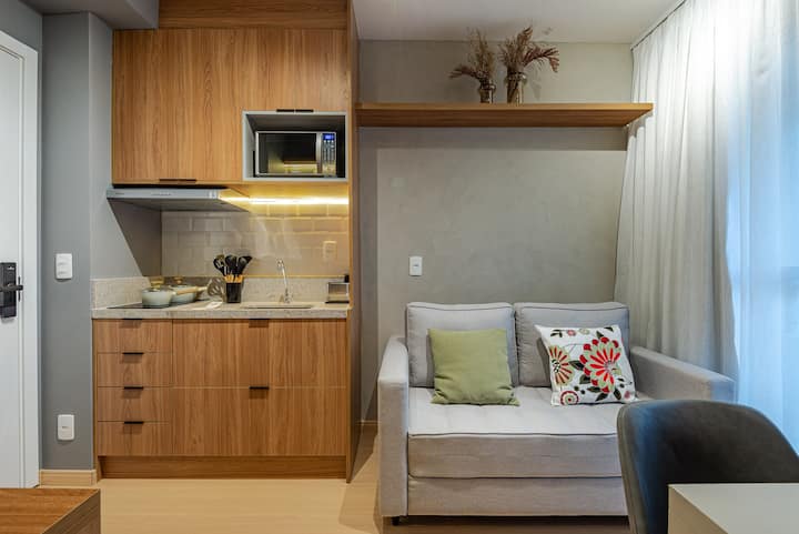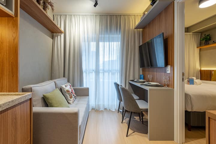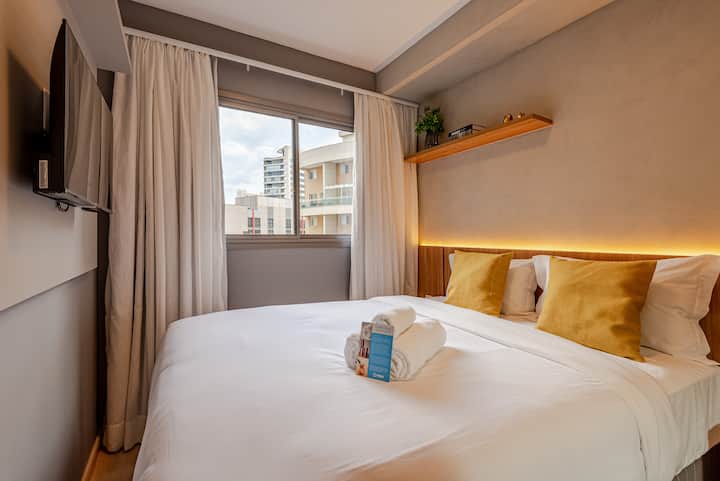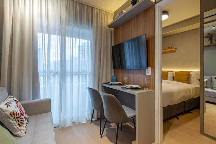 ლუქს-კლასის 1-საძინებლიანი ბინა Vila Nova | აუზი, Ibira, კონდიციონერი
