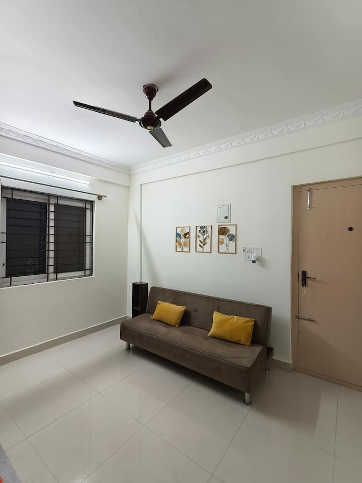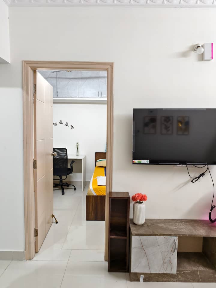 მშვიდი მინიმალისტური 1BHK | იდეალურია სამუშაოსა და დასვენებისთვის