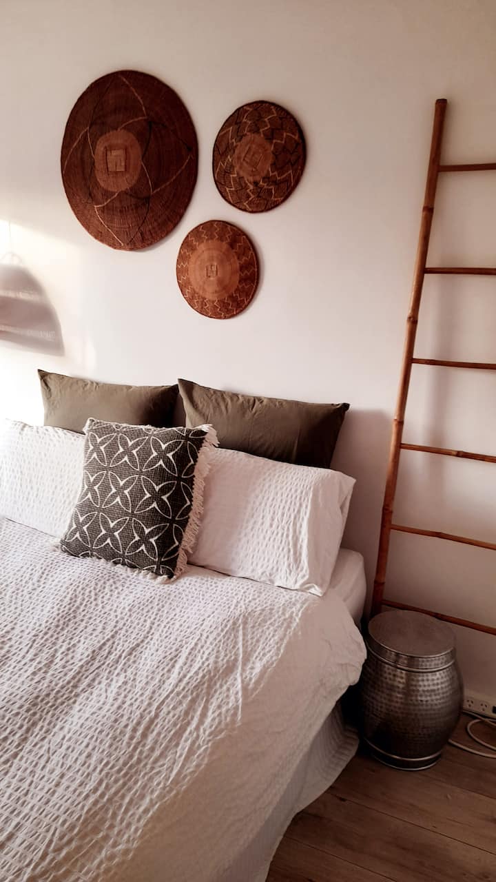 მცენარეებით გარშემორტყმული ელვუდის ბუდე პლაჟთან, ტრანსპორტთან, კაფეებთან ახლოს
