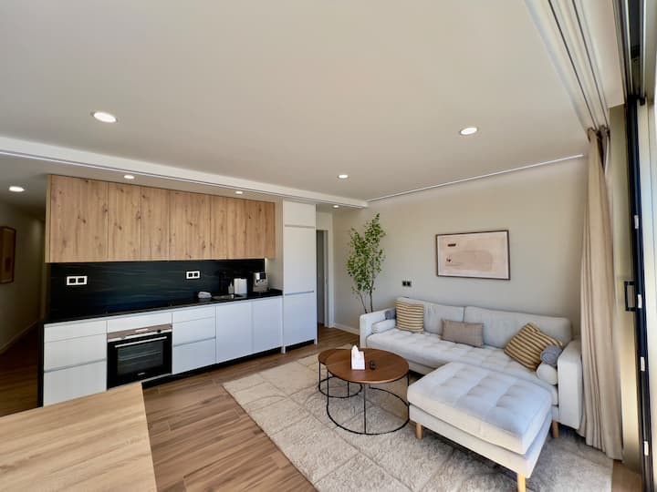 ბინა აივნით, გათბობილი აუზითა და პარკირების ადგილით
