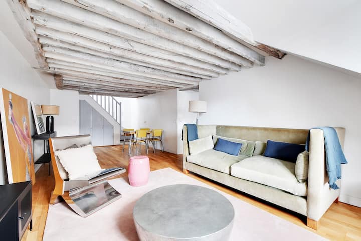 მარეს შუაგულში მდებარე იდეალური ვარიანტი მაქსიმუმ 5 ადამიანისთვის. იშვიათი საცხოვრებელი ორ სართულზეა (დუპლექსი), 3 საძინებლით, პატარა ისტორიული შენობის მე‑6 და მე‑7 სართულებზე (ლიფტით), მშვიდ ქუჩაზე.