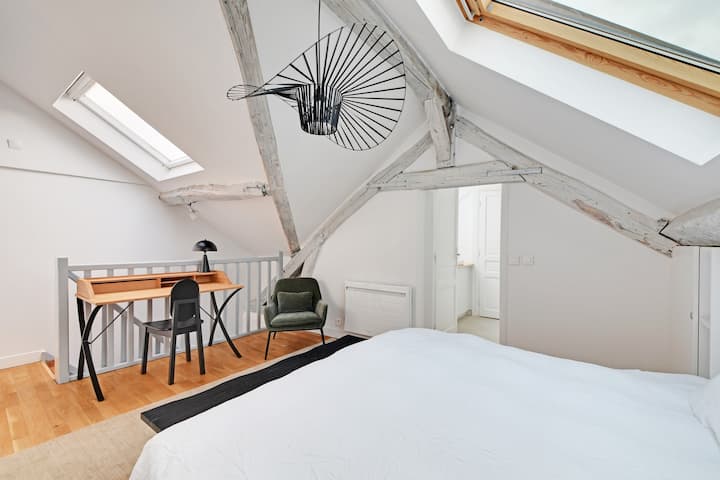 თქვენს ქუჩაზე სრული სიმშვიდეა, პარიზის ცოცხალი ენერგია კი სულ რამდენიმე ნაბიჯის მოშორებითაა: ხელოვნების გალერეები, მოდური რესტორნები, ადგილობრივი კერძების მაღაზიები — ყველაფერი აქვეა.