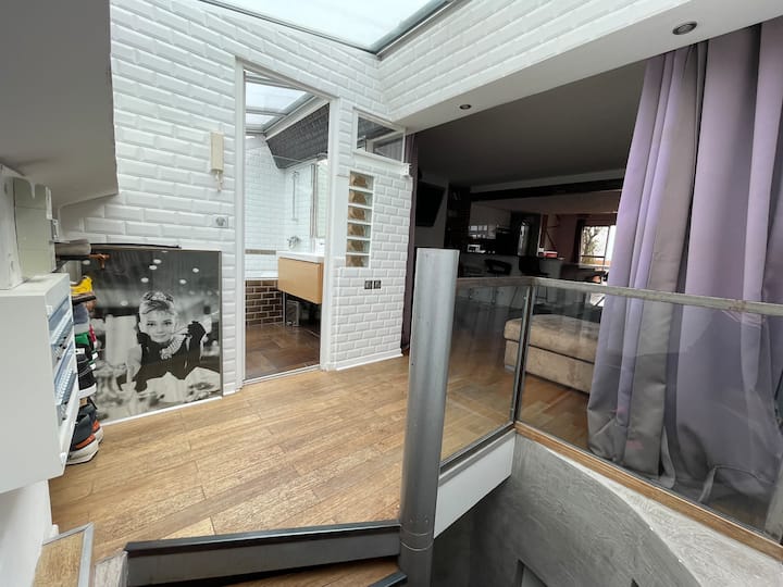 ლოფტში გასაქცევი – ოთახი + ტერასა ლურჯი ხედით