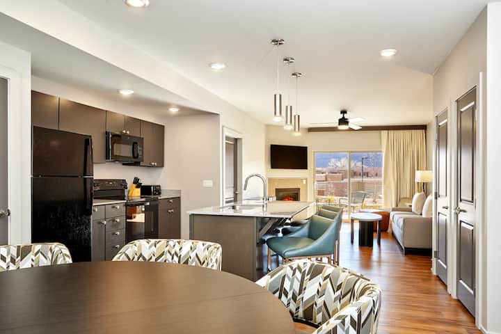 Ეს კურორტი უდაბნოშია, რომელიც სავსეა მაღალი დონის საყოფაცხოვრებო პირობებითა და მთიანი გარემოს განსაცვიფრებელი ხედებით. გაატარეთ ვარჯიში ფიტნესცენტრში, შემდეგ კი ჩაყვინთეთ საცურაო ან ჰიდრომასაჟის აუზში. Დაიწყეთ თქვენი დღე Starbucks-ის ახალი ყავით ან მიირთვით შესანიშნავი კერძები ქვიშაქვის კაფე-რესტორანში. მოეწყვეთ ბუხართან, დაისვენეთ სათამაშო მოედანზე, გაატარეთ დრო თამაშების ოთახში ან მოამზადეთ გემრიელი კერძები გრილზე. მთელი ოჯახისთვის უამრავი გასართობი ვარიანტია