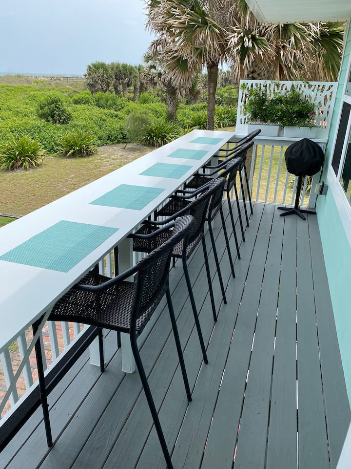 Მარილიანი C კოტეჯი არის ლამაზი 7 Bdrm, 3 Bath Oceanfront სახლში უფლება Saint Augustine Beach, 5 წუთის სავალზე რესტორნები და ბარები. Კოტეჯი განლაგებულია ორი სრულად დამოუკიდებელი დონის მიხედვით, რომელიც ადვილად იტევს 16 სტუმარს (მაქსიმუმ 14 ზრდასრული) და ერთ-ერთი ყველაზე დიდი დასაქირავებელი სახლია, რომელიც ოკეანის პირას დაგხვდებათ. 6 მანქანაზე გათვლილი ავტოსადგომი ადგილზე. Მოიცავს გარე გრილი, პლაჟის სკამები და ქოლგები ჩვენი სტუმრებისთვის. Მკაცრად არ არის შინაური ცხოველები / ქორწილები / წვეულებები ან დამატებითი სტუმრები.