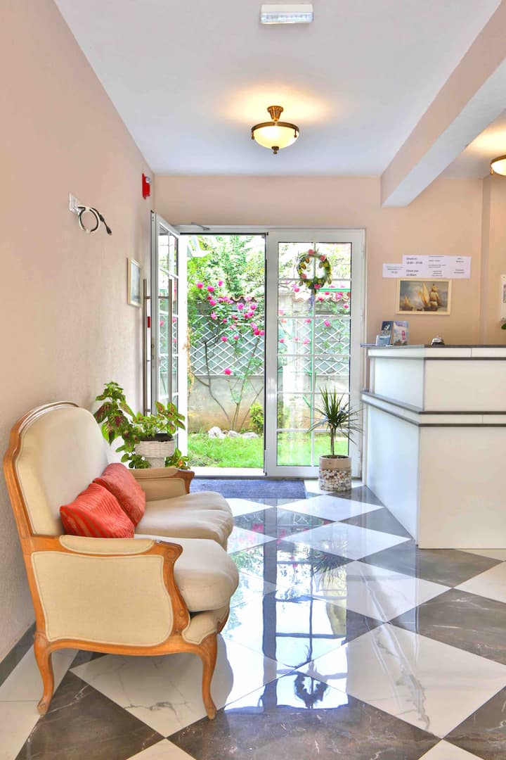 Ჩვენ გვაქვს მიღება, რომელიც მუშაობს 8:00 -დან 23:00 -მდე. მეგობრული პერსონალი ყოველთვის სიამოვნებით დაგეხმარებათ ნებისმიერ მოთხოვნასა თუ შეკითხვაში, ასევე, მოგაწვდით საუკეთესო რჩევებს ქალაქისა და მიმდებარე ტერიტორიის შესახებ.