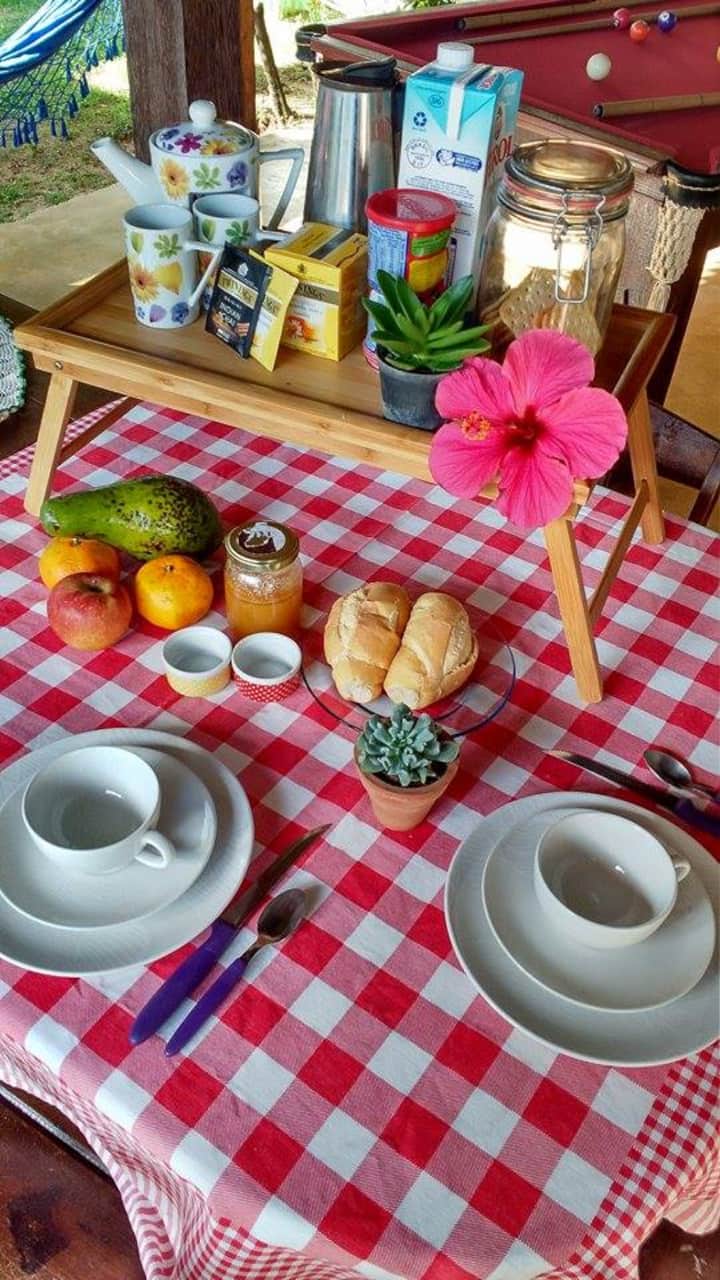 გამარჯობა, ამ სახლში 2005 წლიდან ვცხოვრობ.მე და ქვისმჭრელი ერთად ავაშენეთ. ეს სახლი ჩემთვის განსაკუთრებულია. 46 წლის ვარ, ადვოკატი. აქ ვცხოვრობთ: ჩემი პატარა ქალიშვილი, ორი ძაღლი (მორჩილია, პირდაპირ ბუდეში შეგიძლიათ ჩაალაგოთ) და მე. მე კაპოეირას პროფესორი ვარ და თუ დაინტერესებული ვართ, შეგვიძლია გავიაროთ კურსი იმ უნივერსიტეტში, სადაც მე ვვარჯიშობ.Ვიმედოვნებთ, რომ აქ დარჩენა მოგეწონებათ. მოგზაურობა ჩვენც გვიყვარს. მოგზაურობა ჩემი არსებობის განმარტებაა! აქსე!
