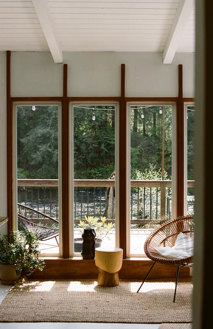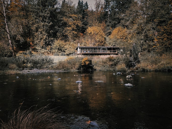 Ჩვენ ასევე ვმასპინძლობთ ორეგონის მდინარის პატარა ხის სახლში, როცა იქ არ ვართ და თავად ვტკბებით.