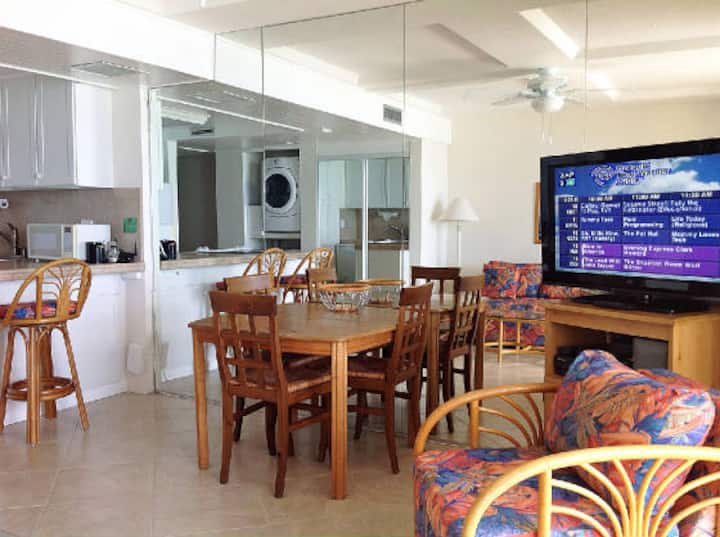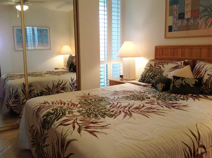 Კალ ‑ კინგ ‑ საძინებელი და დედოფლის ზომის საძინებელი დივანი მისაღებ ოთახში. Სრულად მოწყობილი სრული ზომის სამზარეულო სრული ზომის ტექნიკით (მაცივარს აქვს icemaker) და ყველა საჭირო ნივთით. Ჩვენ ვამარაგებთ ყველა ჭურჭელს, ქვაბების ტაფებს, დანა-ჩანგალს, ტოსტერს, რეგულარულ წვეთოვან მადუღარას (ფილტრებს), მიკროტალღურ ღუმელს და ბლენდერს ჰავაის ხილის სადილის დასამზადებლად. Ასევე, გვაქვს ჭურჭლის სარეცხი მანქანა, 2 ტელევიზორი, ჭერის ვენტილატორი, ვენტილატორები, სარეცხი მანქანა/საშრობი, უთო/დაფა, თეთრეული (პლაჟის პირსახოცების ჩათვლით), ფენი, პლაჟის სკამები, ლეიბები, ბუგის დაფები, სნორკელინგის აღჭურვილობა, პლაჟის ქოლგა და ქულერი. Კონდომინიუმში არსებული სანელებლები განსხვავდება სტუმრებისგან, რომლებიც ახალს ყიდულობენ და ტოვებენ - ასე რომ, ზუსტად არ ვიცით, რა არის ის. ჯერ უნდა შევამოწმოთ და შემდეგ ვიყიდოთ. Ჩვენ კი გთავაზობთ ბინოკლებს კონდომინიუმში გამოსაყენებლად - დააკვირდით პირდაპირ თქვენი ლანაიდან, როგორც ვეშაპები (სეზონზე), დელფინები და გიგანტური ზღვის კუები!