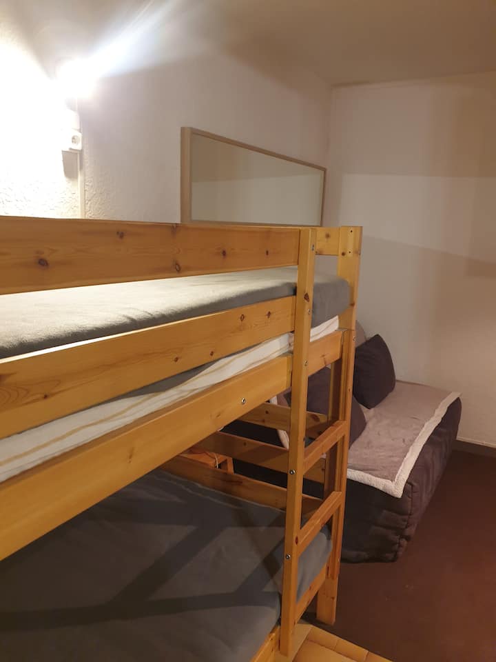 1 გასაშლელი დივანი, 1 ორსართულიანი საწოლი