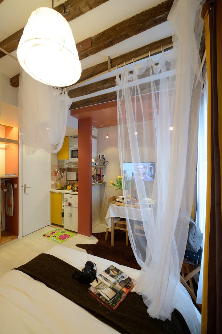 Საცხოვრებელი პარიზის შუაგულში, მარეის რაიონში, ჟორჟ პომპიდუს ცენტრსა და ვოსჟეს ცენტრს შორის და ბევრ მუზეუმთან, მაღაზიასთან და დედაქალაქის ყველაზე მოდურ ბარებთან ახლოს.