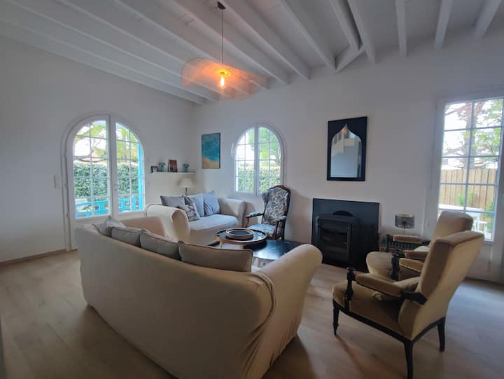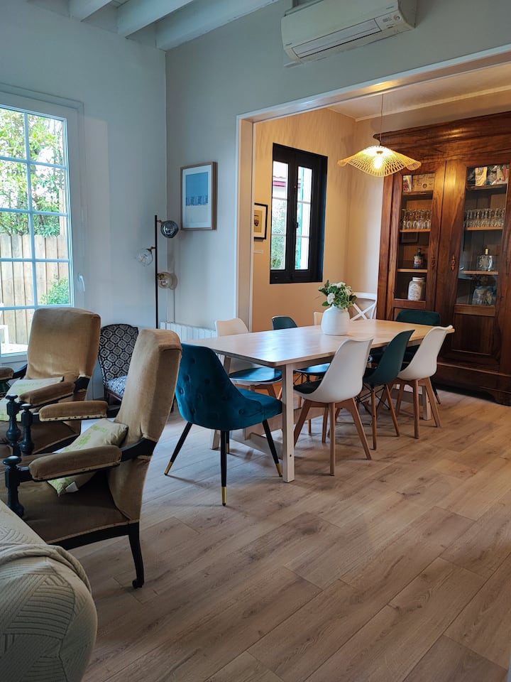 Ჩვენი სახლი იდეალურია მეგობრებთან და ოჯახის წევრებთან ერთად შეკრებისთვის. Ის იდეალურად მდებარეობს (პლაჟამდე და მაღაზიებამდე მისასვლელი საფეხურები). Მალე დაგავიწყდებათ თქვენი ავტომობილი! Ძალიან კომფორტული და ძალიან კარგად აღჭურვილი, ის შედგება მთავარი სახლისგან (130 მ2), შემოღობილი ბაღისგან (450 მ2) და პავილიონისგან (30 მ2). Ნებისმიერ სეზონზე სასიამოვნოა შეშის ღუმელისა და შექცევადი კონდიციონერის წყალობით. Სასტუმროს უპიროვნო კონცეფციისგან შორს, სახლში თავს ძალიან სწრაფად იგრძნობთ!