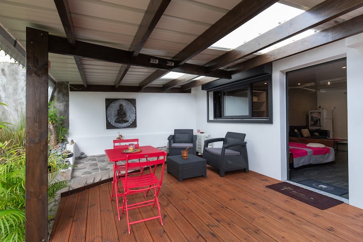 - დასასვენებლად დასაქირავებელი საცხოვრებლები გარე დასაჯდომი ადგილებით: Réunion