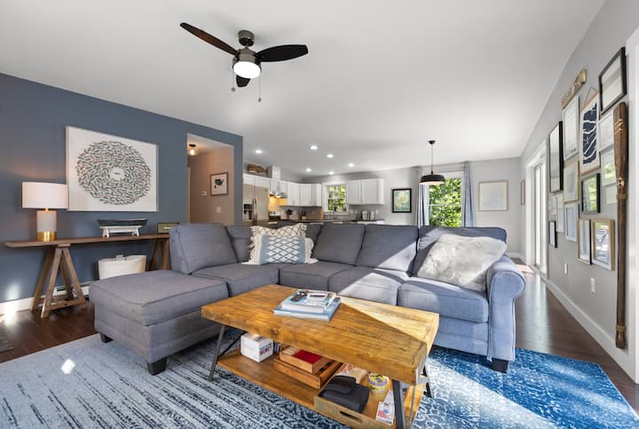 Მენი მთელი ცხოვრება ვიკვლევთ და 2017 წელს აქ ჩვენი ოცნების სახლი ავაშენეთ. Ჩვენ ვცხოვრობთ და ვმუშაობთ ნიუ-იორკში, ამიტომ ვერ ვახერხებთ აქ იმდენი დროის გატარებას, რამდენიც გვსურს, მაგრამ მოხარული ვართ, რომ გაგიზიარებთ! Ჩვენ ვიცოდით, რომ ჩვენ გვინდოდა ფესვების ჩალაგება მენიში და სტეუბენში მდებარე ამ ადგილმა შეამოწმა ყველა ყუთი ჩვენთვის, როდესაც ეძებდა იდეალურ გაქცევას. Არა მხოლოდ ჩვენ ვართ დიდებული სანაპირო ზოლში, არამედ სახლი მოთავსებულია Petit Manan National Wildlife Refuge-სა და Pigeon Hill-ის ნაკრძალს შორის, რაც შეუძლებელს ხდის რეგიონის ბუნებრივი სილამაზითა და სიმშვიდით ტკბობას. Ეს არის იდეალური ბალანსი მშვიდობიანი იზოლაციის გარეშე ზედმეტად დაშორებული და აკადიის ეროვნულ პარკში ერთდღიანი მოგზაურობები ნიავია. Ყველას, ვისაც გარეთ ყოფნა უყვარს, ოთხივე სეზონზე უამრავი სიამოვნებაა მენის სხვა მიმართულებების ხალხმრავლობის გარეშე. Შენობის პროცესში ჩვენ დავრწმუნდით, რომ ჩვენ ვიცით, რომ ჩვენ გვსურს, რომ ჩვენ გვსურს, თუ გამქირავებლები ვიქნებოდით: მთავარ საძინებელს აქვს სააბაზანო ოთახი, და არის დიდი 500 კვ .მ გემბანი, რაც საშუალებას გაძლევთ, რომ გარეთ დარჩეთ. Თუ შენობაში გაჭედილი, ღია სამზარეულო სივრცე, დიდი სასადილო მაგიდა და სექციური ტახტი/მისაღები ოთახი ქმნის მყუდრო, სტუმართმოყვარე ატმოსფეროს, რომელიც ოპტიმალურია დიდი კერძის მოსამზადებლად, ფილმის საყურებლად, სამაგიდო თამაშების სათამაშოდ ან წასაკითხად. Ჩვენ დავურთეთ დიდი გასაწევი კარები გემბანზე და დიდი ფანჯრები მთელ სახლში, ამიტომ არ არის ბუნებრივი სინათლისა და წყლის ხედების დეფიციტი. Გრილის/ცეცხლმოკიდებული ორმოს ტერიტორია ასევე შესანიშნავი ადგილია ღია ცის ქვეშ საღამოს გასატარებლად.