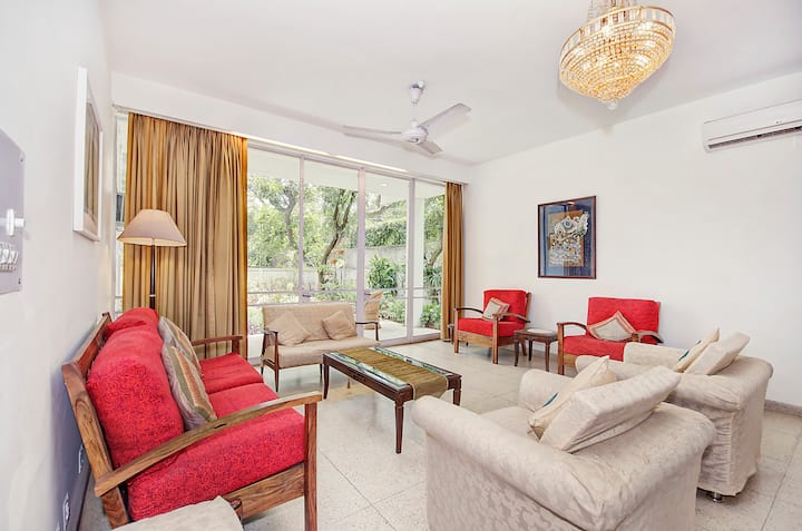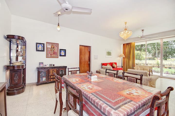 ჩემი BnB, რომელიც მდებარეობს Hauz Khas Enclave-ის ფართო და მწვანე ბილიკების შუაგულში, იდეალური საცხოვრებელია ყველა სახის მოგზაურისთვის. Სახლი, რომელიც 1965 წელს აშენდა, ღია სივრცეების ნავსაყუდელია როგორც წინა, ისე უკანა მხარეს და პატრონებს იმ ეპოქას ახსენებს, რომელიც წარსულს ჩაბარდა.