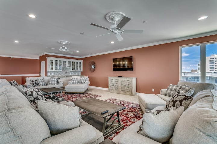 Ლუქს-კლასის საცხოვრებლებისა და პლაჟზე მარტივი წვდომის გარდა, ეს პლაჟისპირა დასაქირავებელი სახლი შესანიშნავი მდებარეობით გამოირჩევა ჩრდილოეთ მირტლ ‑ ბიჩის (სამხრეთი კაროლინა) მდებარე Cherry Grove ‑ ის ტერიტორიაზე. Თქვენ ახლოს იქნებით ყველაფერთან, მათ შორის, ცოცხალ გასართობ თეატრებთან, გოლფის თითქმის 100 მოედანთან და 1500-ზე მეტ რესტორანთან, როცა რომეოს ოკეანისპირა დასასვენებელ საცხოვრებელში სტუმრები იქნებით. Დაჯავშნეთ ეს ულტრათანამედროვე დასასვენებელი სახლი და იყავით პირველი, ვინც ამ მდიდრულ საცხოვრებელში დარჩება.