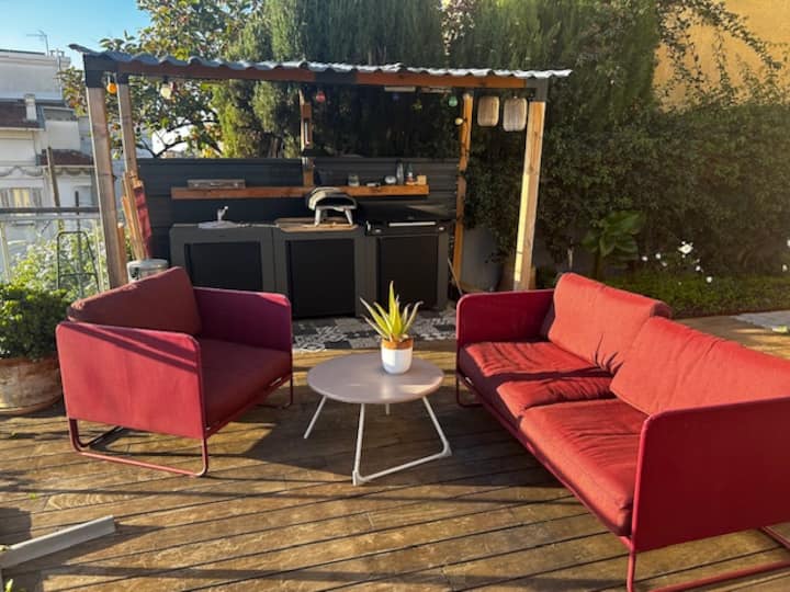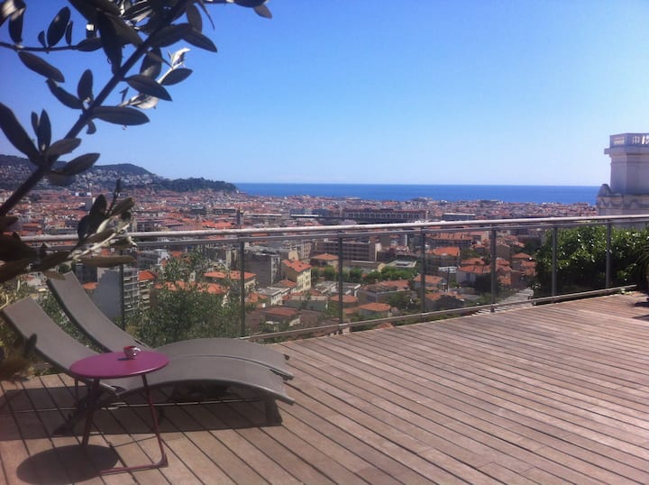 Ნიცას სახლი ტერასა საზაფხულო სამზარეულო, ზღვის ხედი.